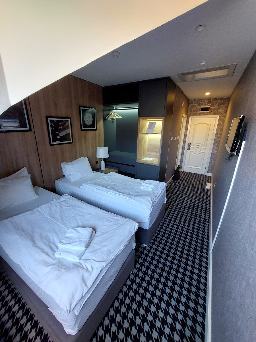 The hotel boasts impressive amenities, including free Wi-Fi, air conditioning, and convenient local parking. The spacious rooms are designed with comfort in mind, featuring large, thick beds that ensure a restful night’s sleep. The serene environment, particularly with closed windows, allows for an undisturbed experience, making it suitable for both short and extended stays.
